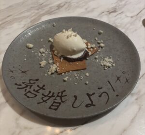 フレンチの個室で赤いバラとお手紙にて