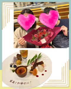 昼過ぎから映画館へ行き、一緒にチェンソーマンの映画を観ました。予約していたアイリスへ行きプロポーズ。準備したものに対して、かなり喜んでもらえたので嬉しかったです(最高の瞬間でした)。
